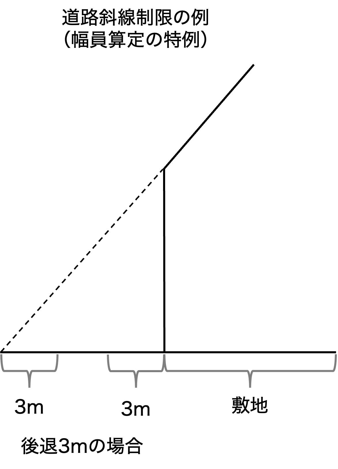 道路斜線制限とは、採光や通風を確保し、ビルの谷間を防ぐために、建築物の高さを前面道路の幅員に応じて制限するものです。