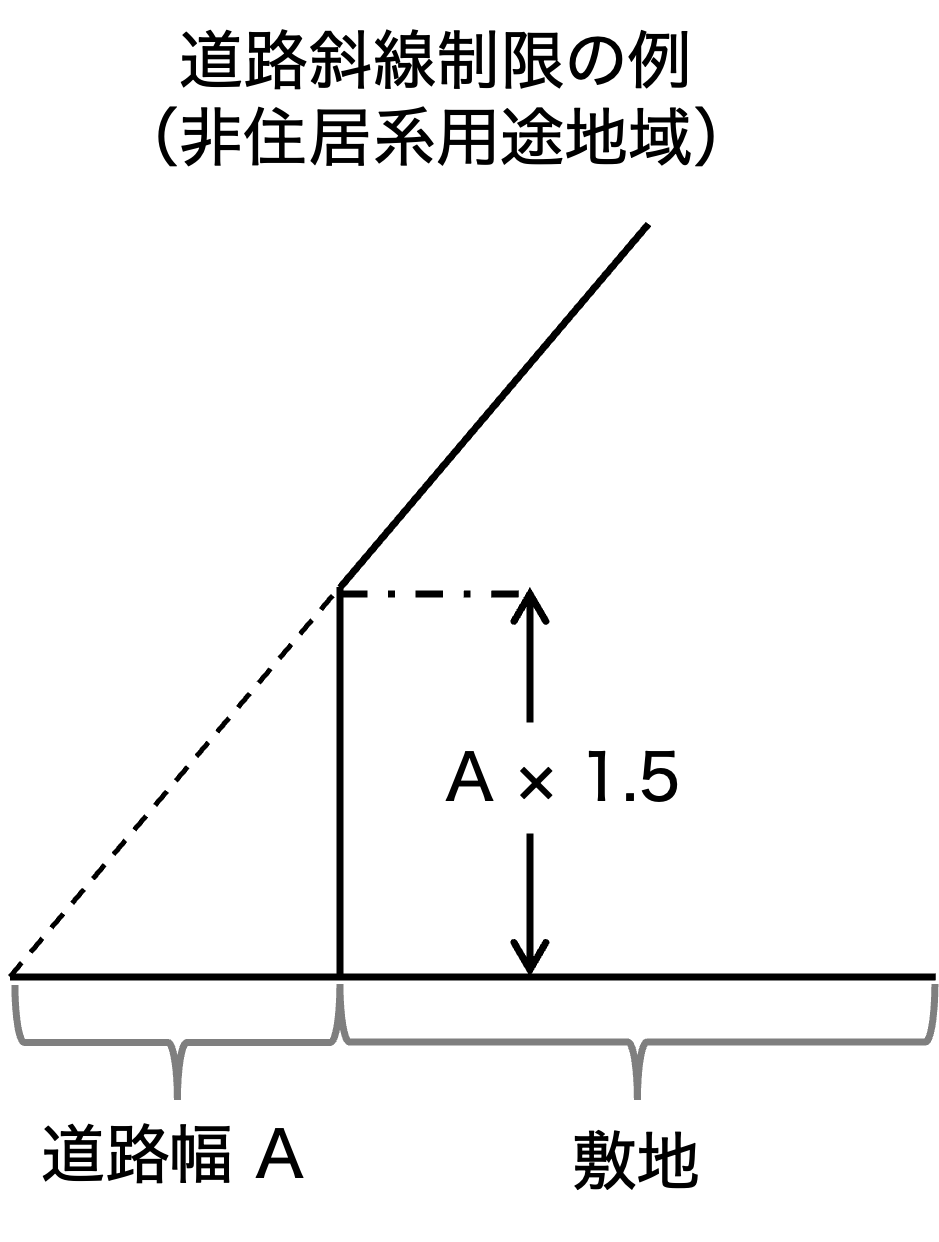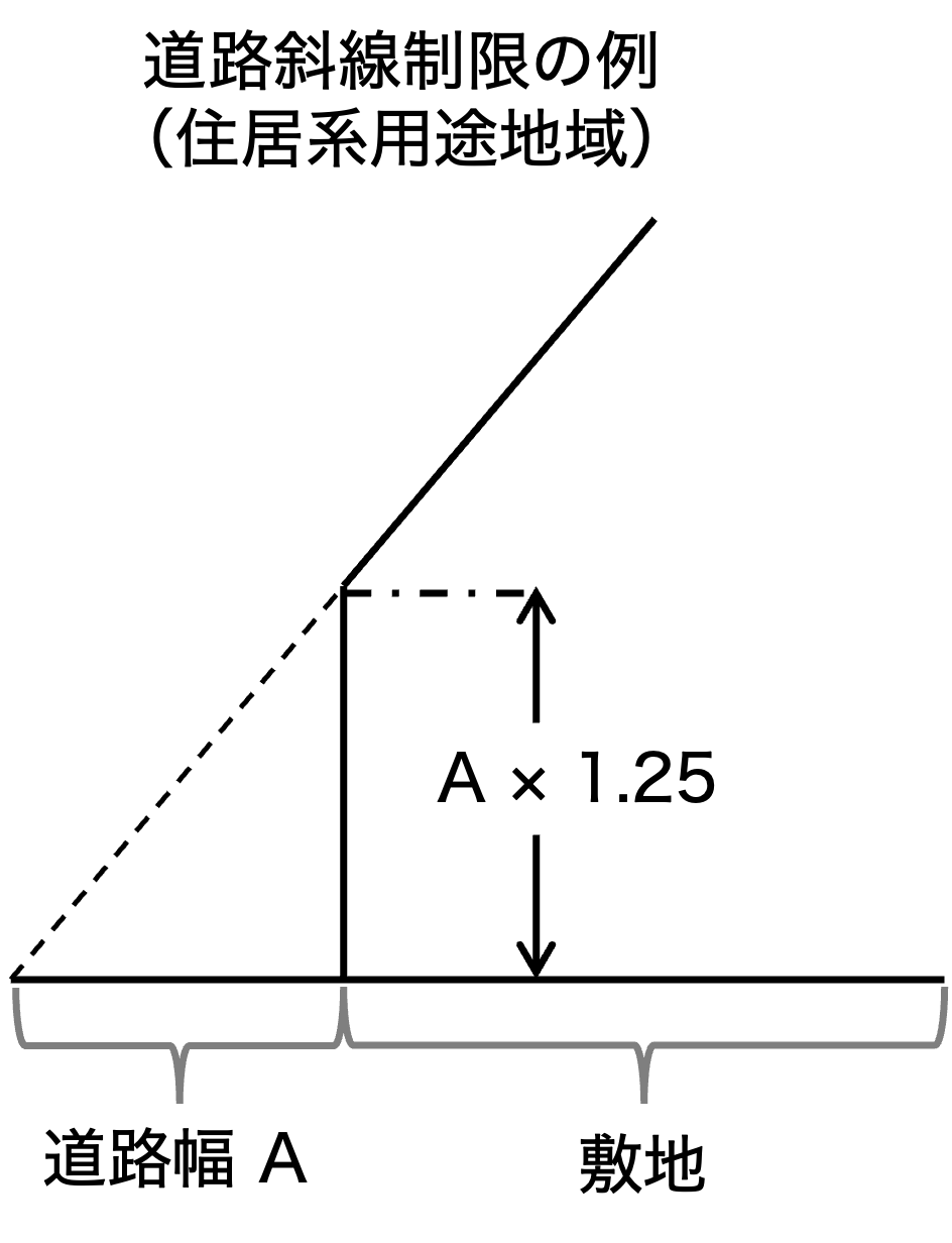 建物の各部分の高さは、その部分から前面道路の反対側境界線までの水平距離に1.5(住居系用途地域の場合は1.25)を乗じた値以下でなければなりません。