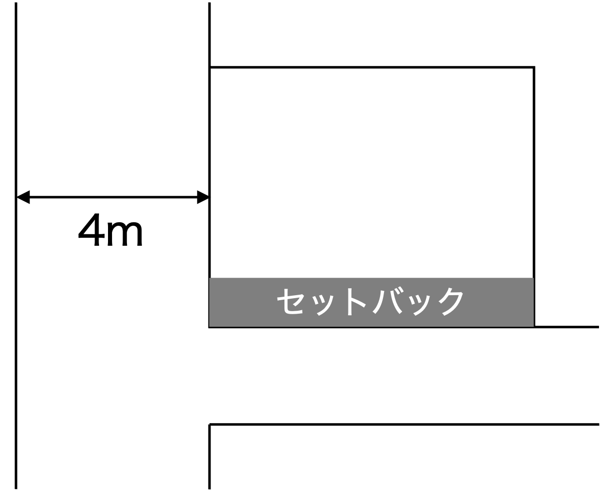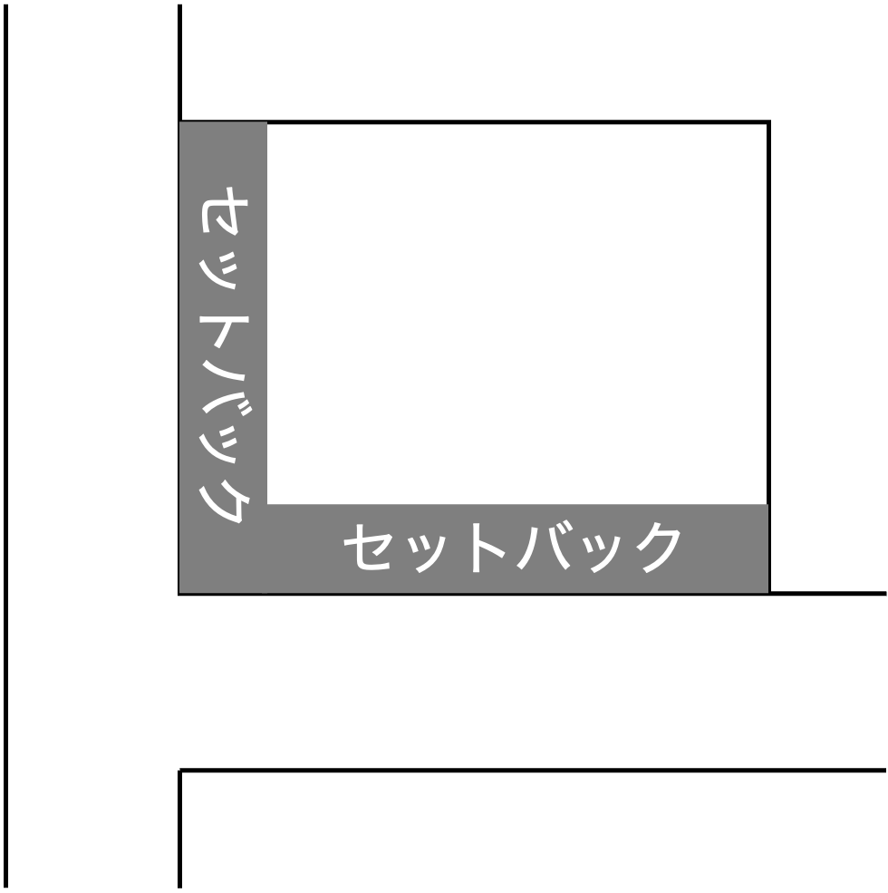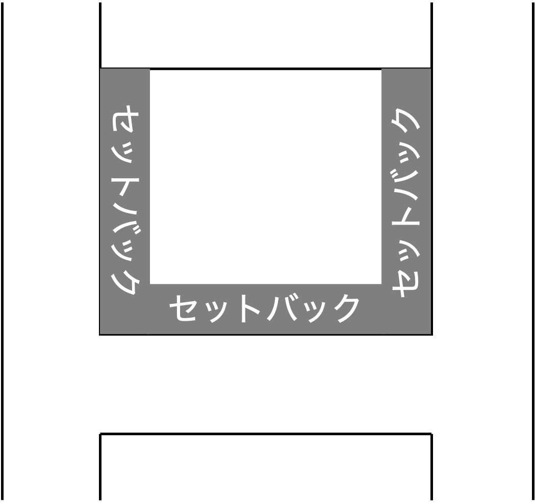道路境界線とみなされて後退した部分は「セットバック」と呼ばれます。セットバック部分は建蔽率や容積率の算定上、敷地面積に含めることができず、建築もできません。